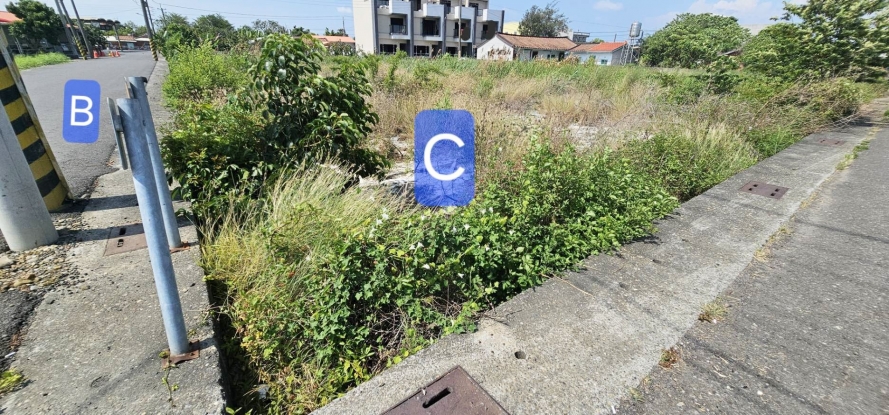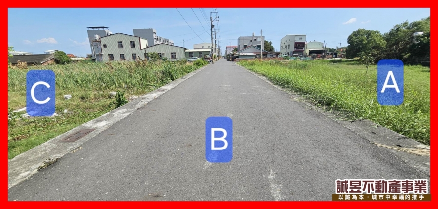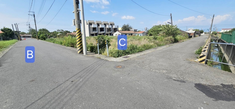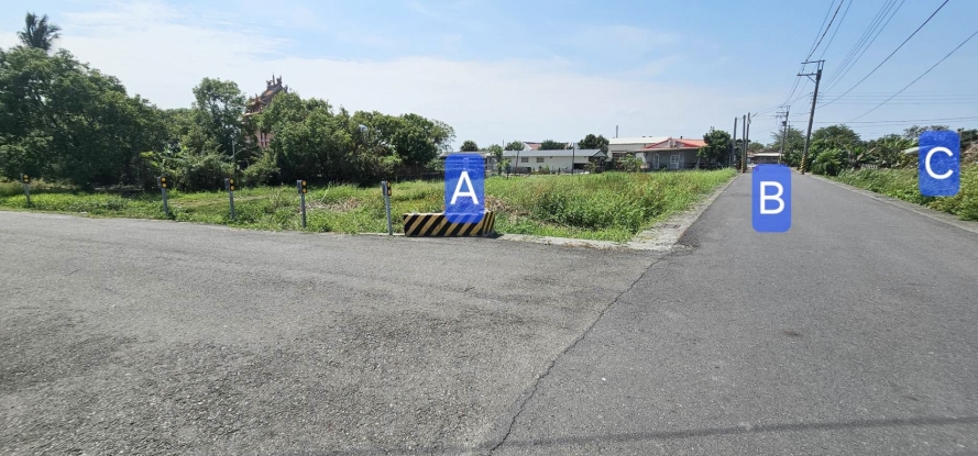 1.本案相鄰農地有A B C3筆,其中B筆為道路用地,現況已是柏油路面有排水溝,賣方3筆持分皆一起出售